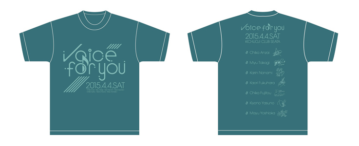 ![]() Tシャツ フリーサイズ ¥3,000 表面に「Voice for you」のロゴ、背面に出演者全員のサインプリント入り。 |